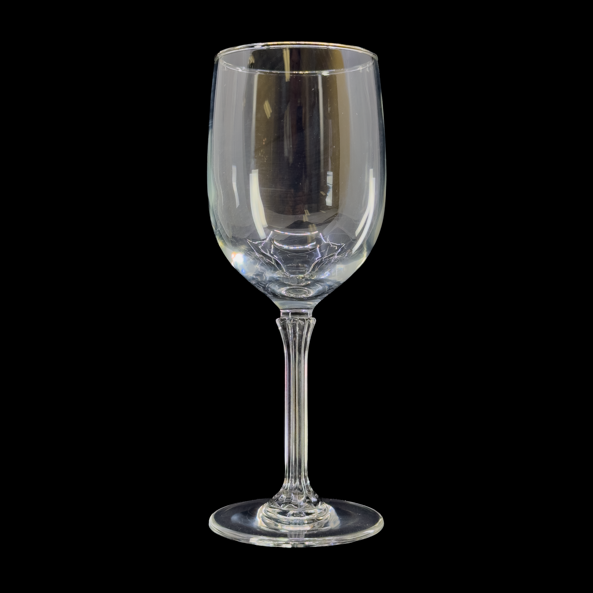 Set of 2 gold-rimmed wine glasses by Luminarc. Circa 1970s. Capacity 8.5oz. 7.5"