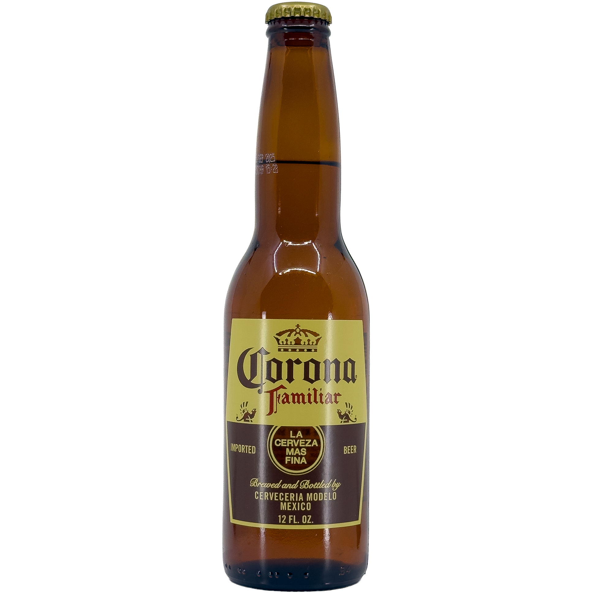 Corona Familiar pours a deep golden hue with a light, creamy head. The nose opens with malty and fruity notes, including gentle caramel and cereal undertones. On the palate, it is bright and crisp, with a well-balanced blend of malt sweetness and clean bitterness. A mild fruitiness and subtle earthiness from the hops add depth, while the smooth body offers a rich mouthfeel without heaviness. It finishes clean, making it approachable yet flavorful.