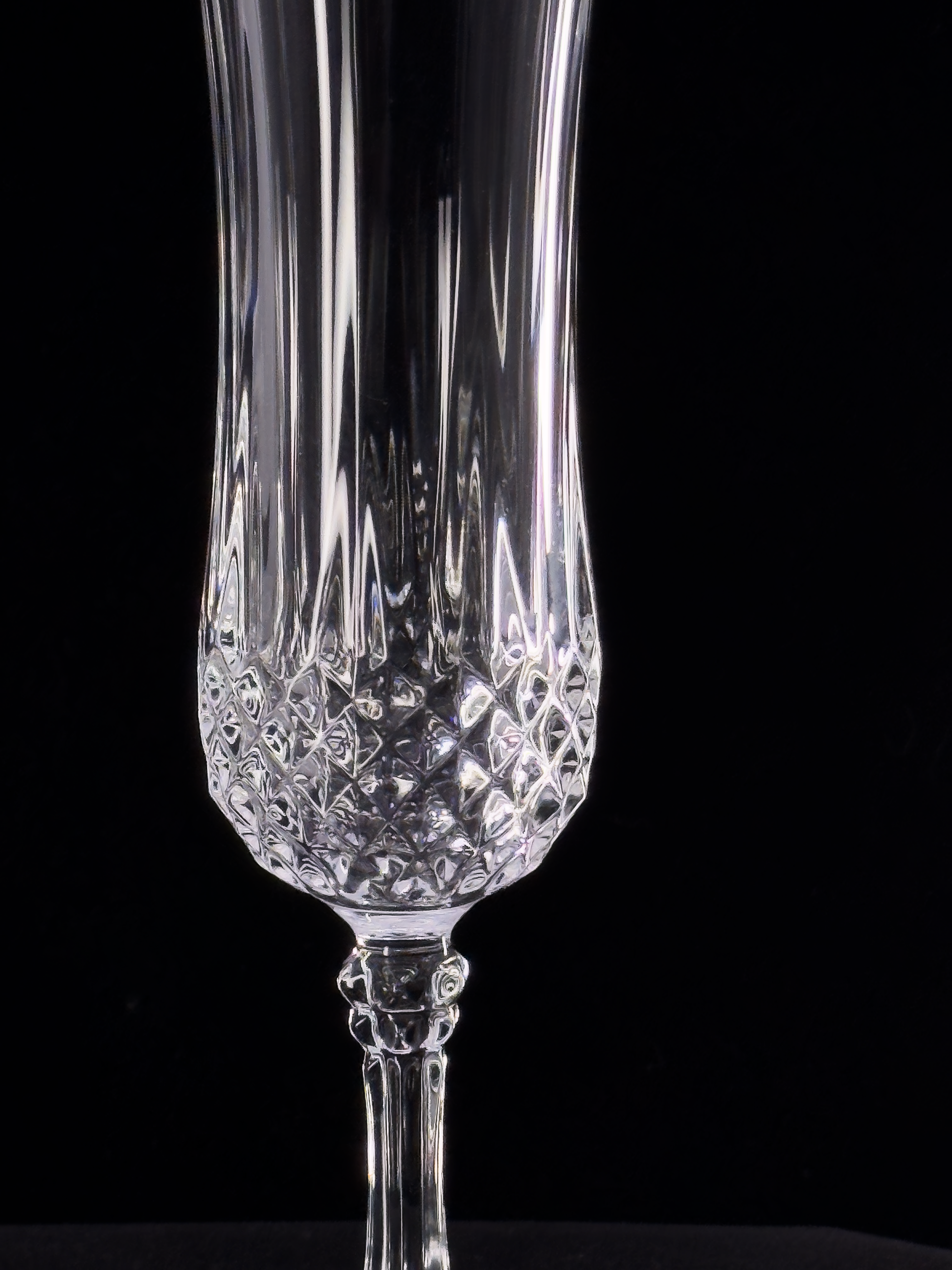 - Piece Name & Line: Longchamp Clear Champagne Flute, Cristal d’Arques–Durand, France