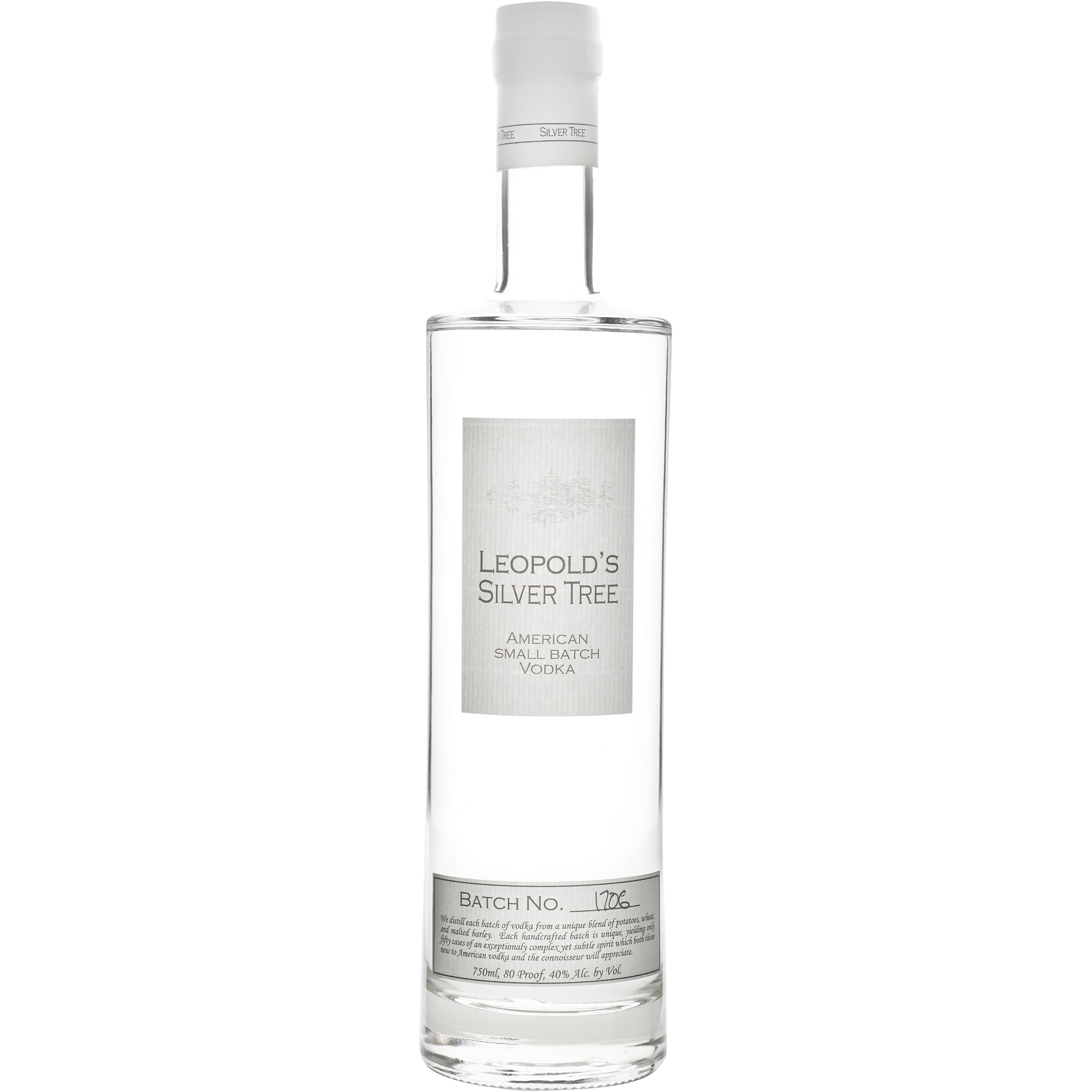 Leopold Brothers’ Silver Tree American Small Batch Vodka rises from Colorado’s rich terrain as a spirit of remarkable purity and balance. Distilled seven times from a carefully chosen blend of potatoes, malted barley, and summer wheat, it masterfully unites the depth and silkiness of a potato vodka with the crisp, clean character of grain. The result is a vodka that’s refined yet distinctive, built for those who value both craftsmanship and complexity.