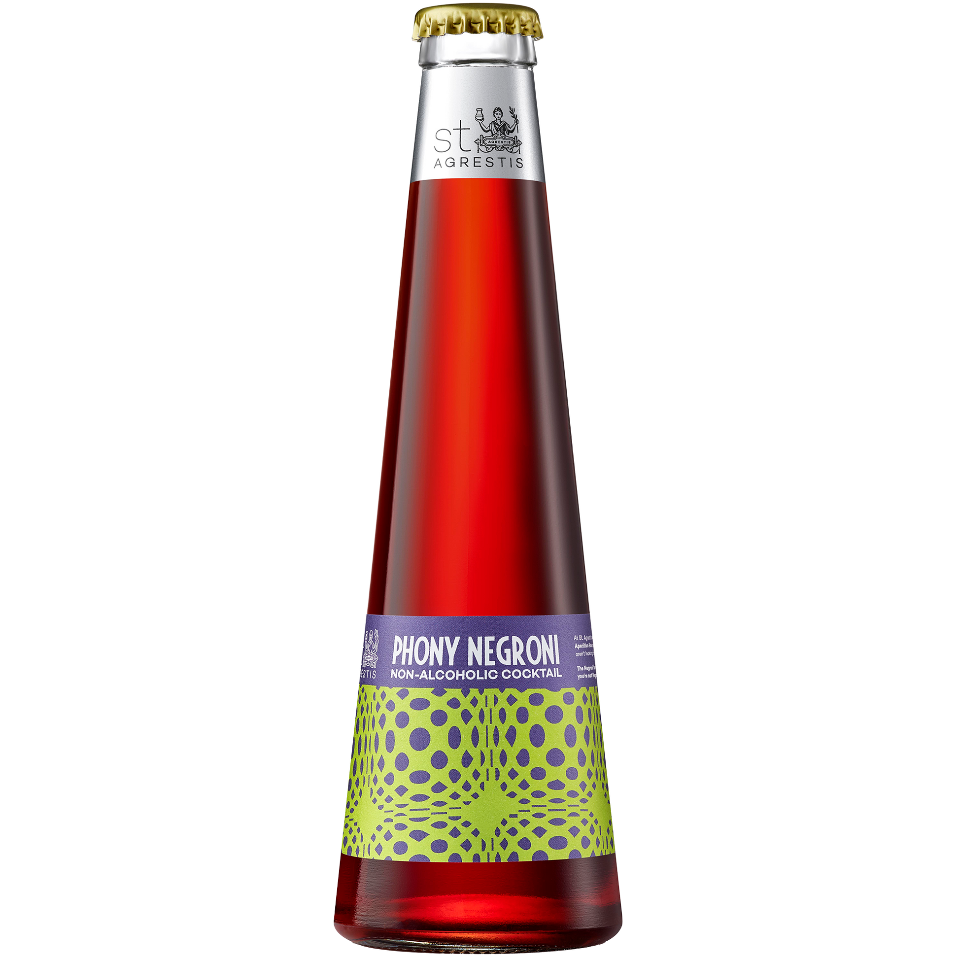 The St. Agrestis Phony Negroni Cocktail is a bold reimagining of the iconic Italian aperitivo, meticulously crafted to replicate the full experience of a classic Negroni, without the alcohol. Layered with floral, citrus, and bitter botanicals, this ready-to-drink zero-proof cocktail delivers elegance, balance, and depth with every sip.
