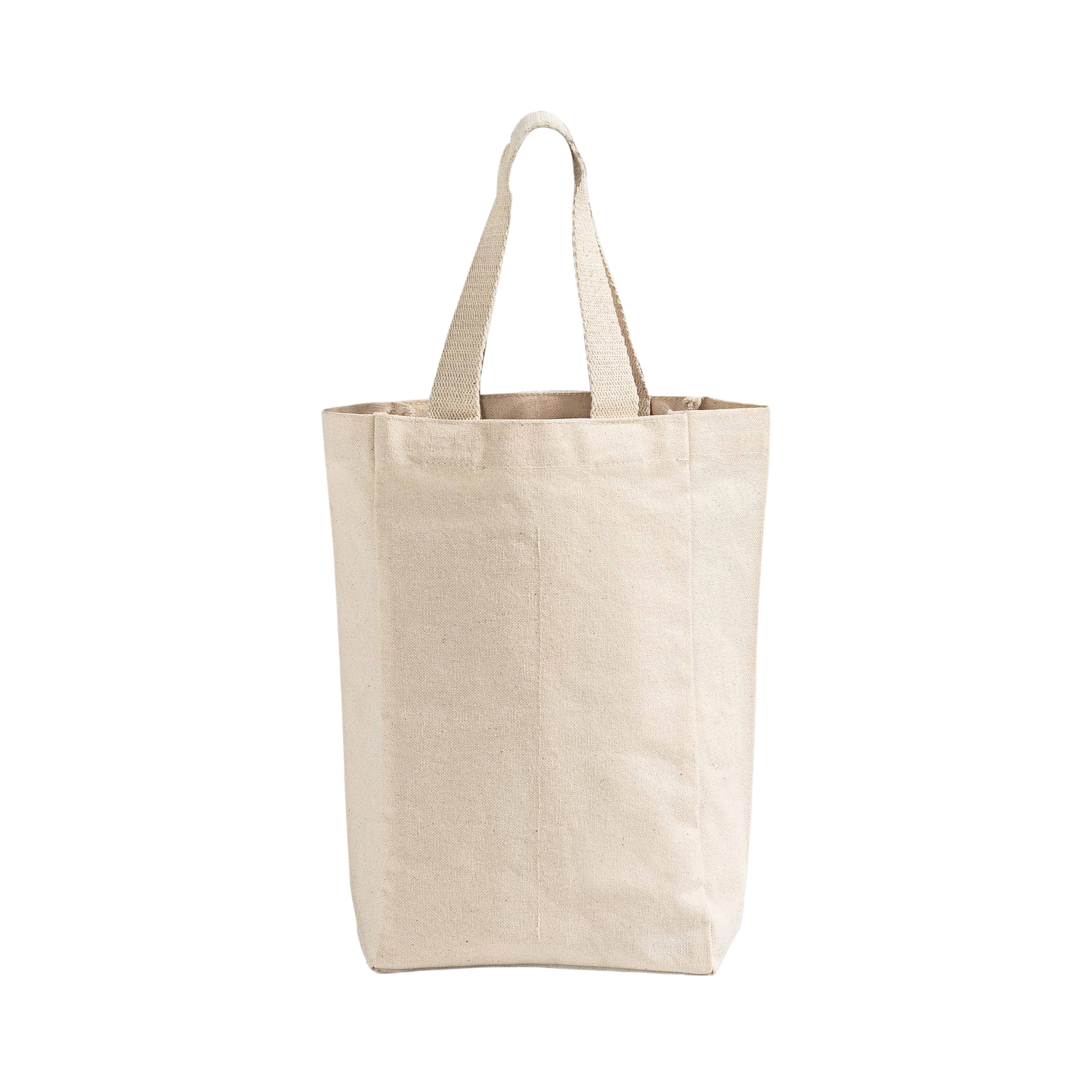 Elevate your wine-carrying game with the Canvas Double Wine Tote Bag! Crafted from 10 oz./square yd 100% cotton canvas, this 5.5" x 10.5" x 3" tote is both durable and eco-friendly. Perfect for holding two 750 ml bottles or one large bottle, it features a cushioned center divider that ensures safe transport and folds flat for easy storage. The fabric webbed handles provide comfortable carrying, whether you're gifting at a housewarming, shopping for wine, heading to a picnic, or distributing party favors. Its natural color offers a timeless look, and the 2"W x 6"H imprint area allows for subtle branding, making it an ideal choice for promotional events. Specs: SKU: WB202 Material: 100% Cotton Canvas Fabric Weight: 10 oz./yd² Size: 5.5"W x 10.5"H x 3"D Imprint Area: 2"W x 6"H Handle Length: 13" Handle Style: Self-fabric Handles